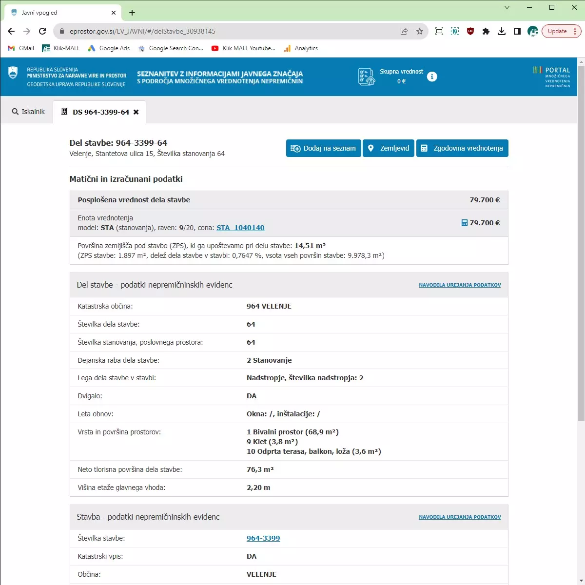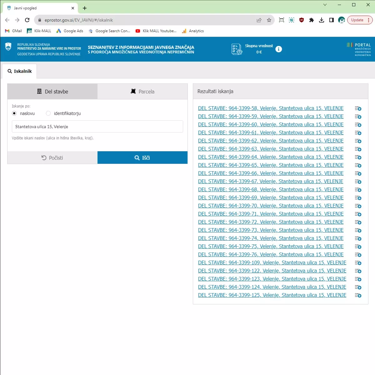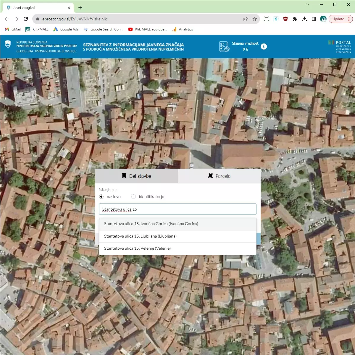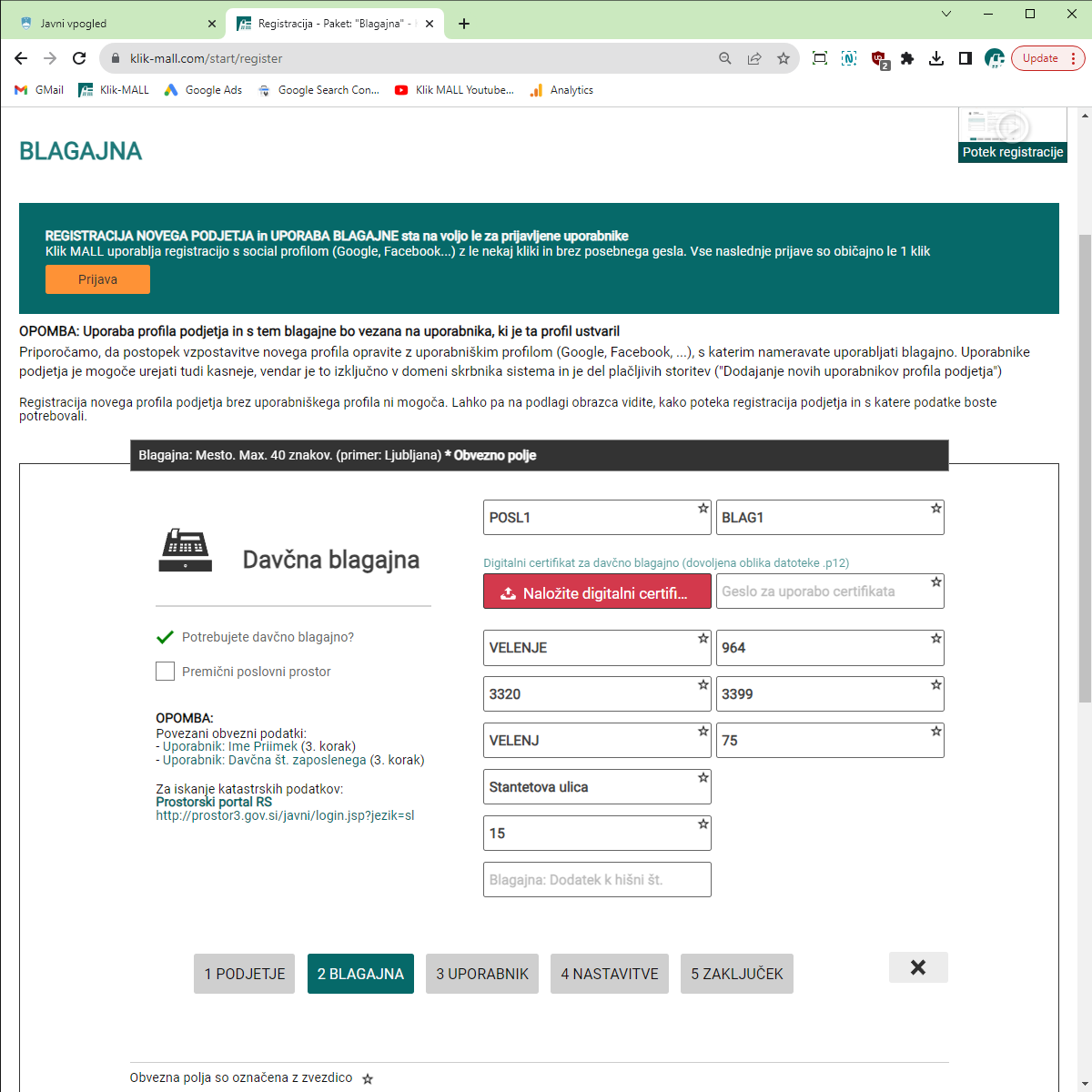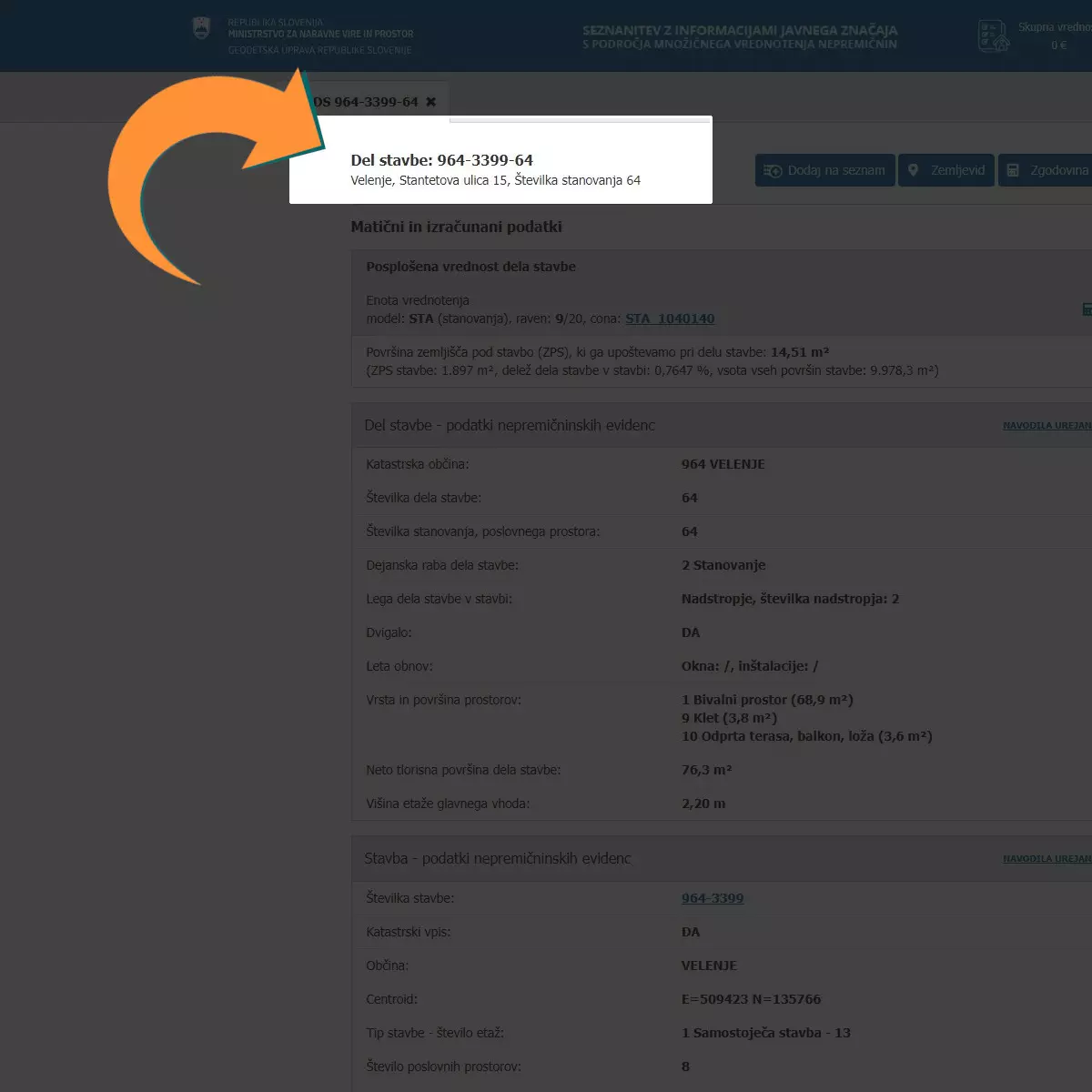 Na povezavi https://eprostor.gov.si/EV_JAVNI/#/iskalnik poiščete nepremičnino, v kateri boste izdajali račune z davčno blagajno. 3 podatke morate vnesti v obrazec ob registraciji davčne blagajne v stalnem poslovnem prostoru: