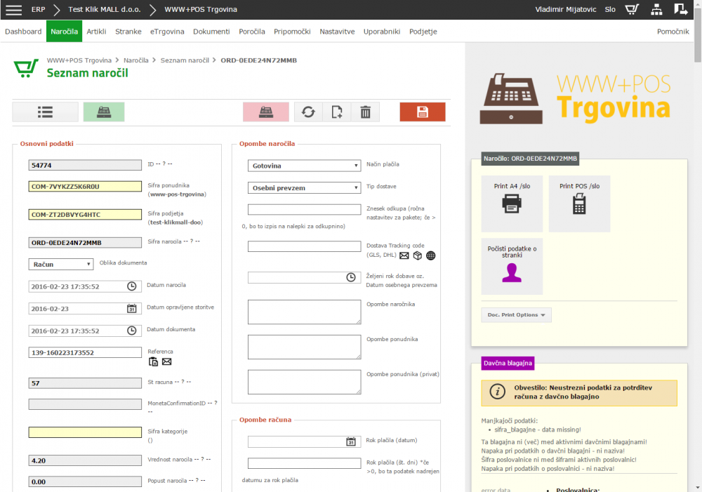 - Naročilo iz spletne trgovine pretvorite v račun in po potrebi potrdite z davčno blagajno
