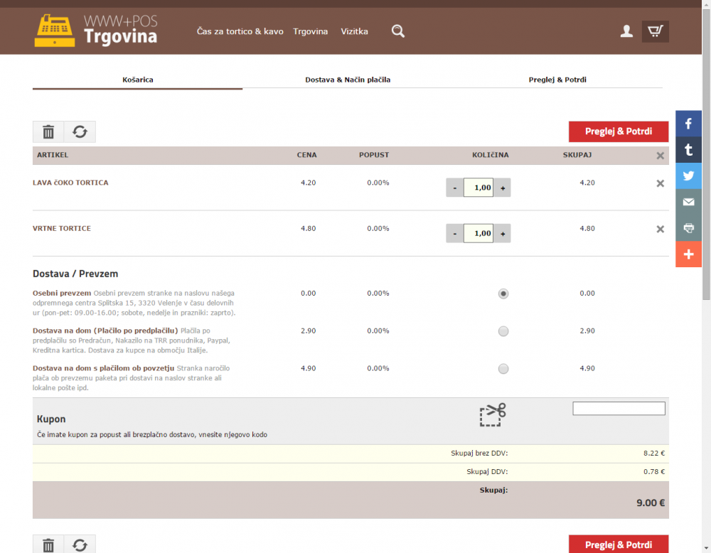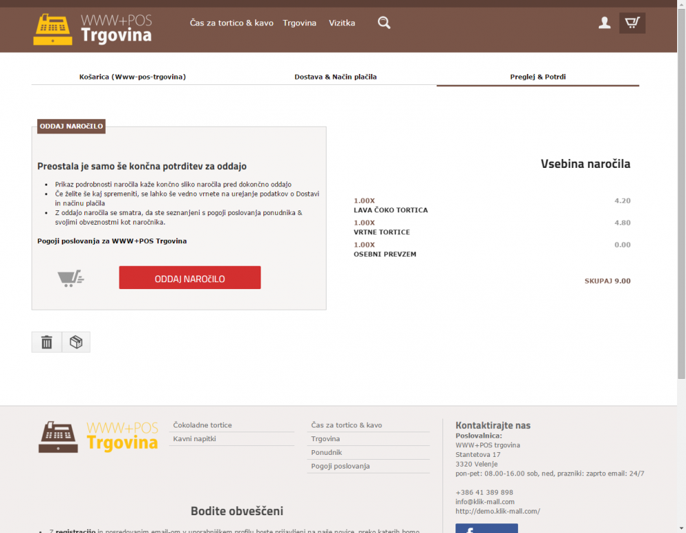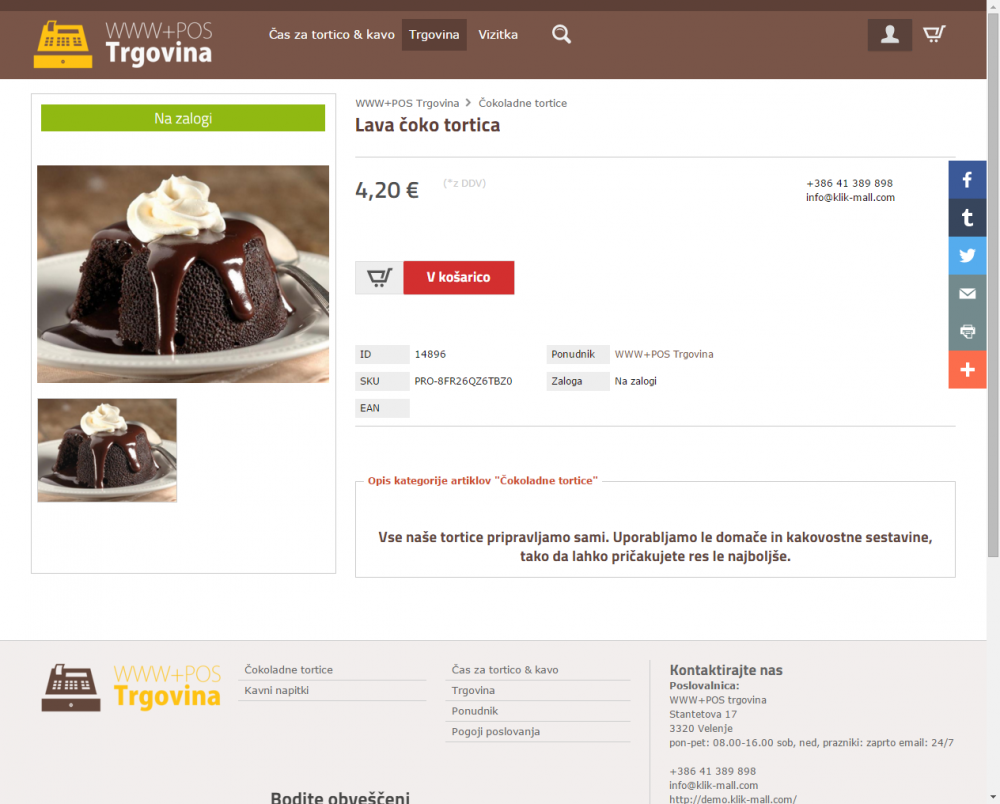 Pripravili smo demo spletno trgovino za prikaz nekaterih možnosti, kako je lahko videti vaša spletna trgovina, kako poteka oddaja naročila in kako lahko predstavite svoje izdelke.